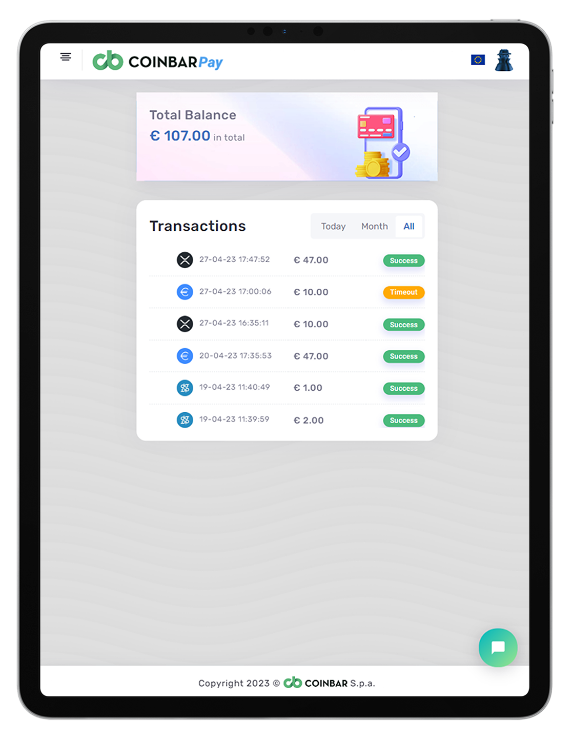 * <mark style="color:orange;">**Timeout:**</mark> The "Failed - Timeout" status signifies that the payment did not complete within the specified time window set by CoinbarPay.&#x20;